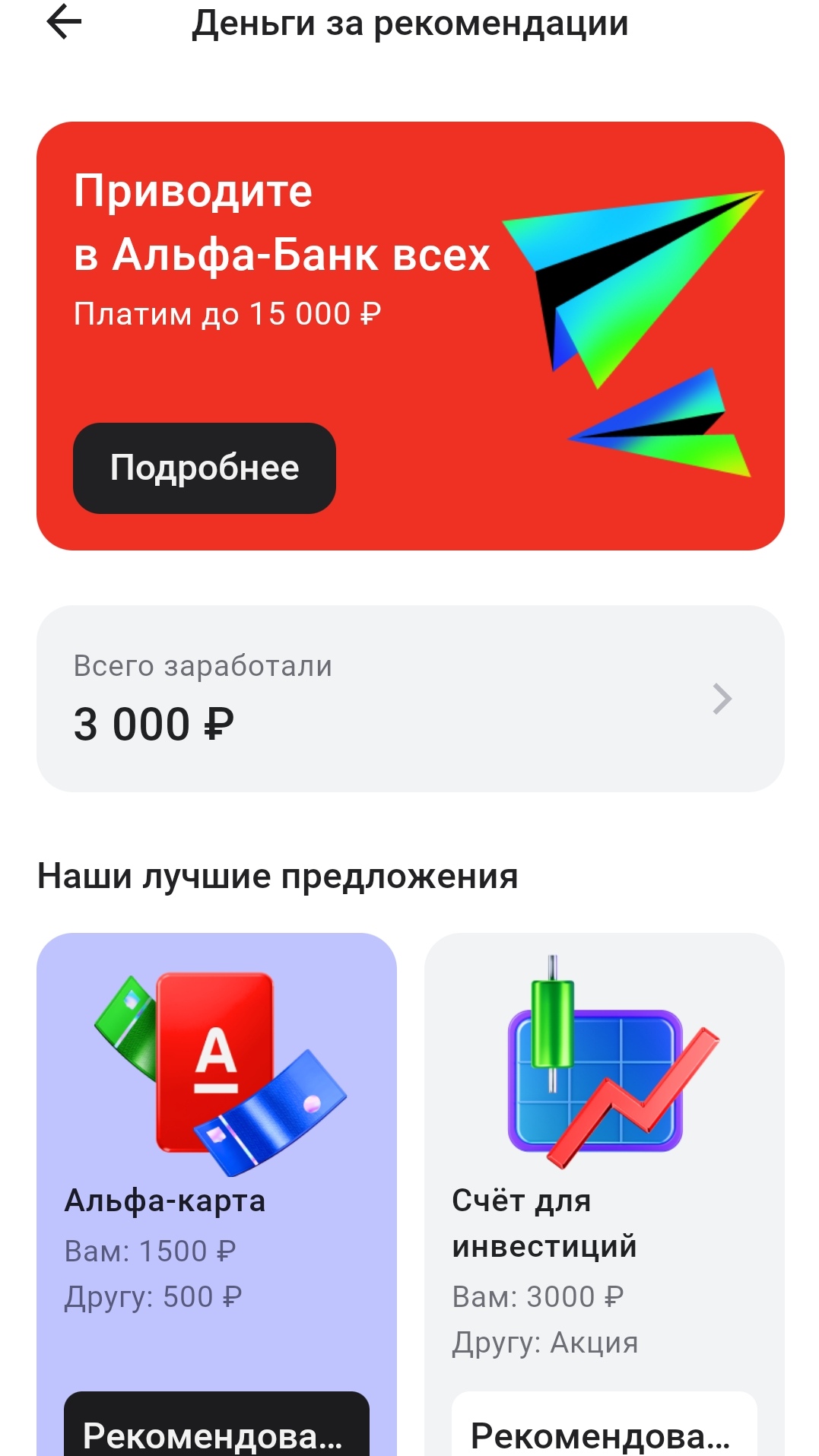 Похоже, гонка за новыми клиентами среди банков выходит на новый уровень. Альфа-Банк в очередной раз пересмотрел условия программы «Деньги за друзей». Если раньше за обычную дебетовую карту платили по 500 или 1000 рублей, то теперь планка поднялась до 1500 рублей. Это довольно весомый аргумент, чтобы вспомнить, кто из знакомых до сих пор не обзавелся «красной» картой, особенно учитывая, что бонус другу тоже сохранили.