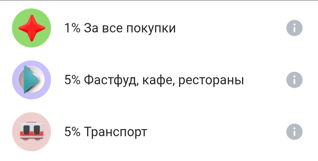 Категории выбрала стабильные: 5% на фастфуд и рестораны и 5% на транспорт. тут и запоминать нечего, эти категории у меня выбраны всегда.