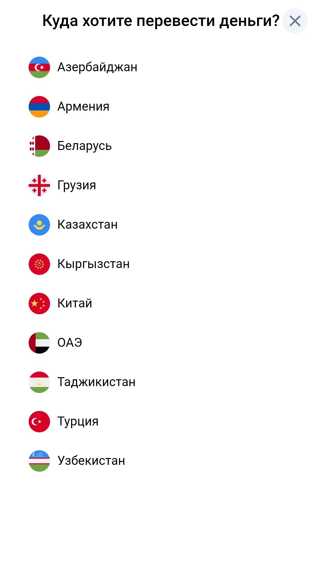 Актуальный список стран можно узнать на главной странице сервиса "Переводите деньги в любую страну".