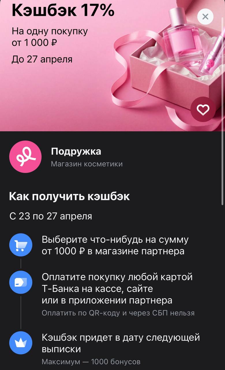 Кэшбэк 17% в «Подружке»: ловим выгоду за пять дней