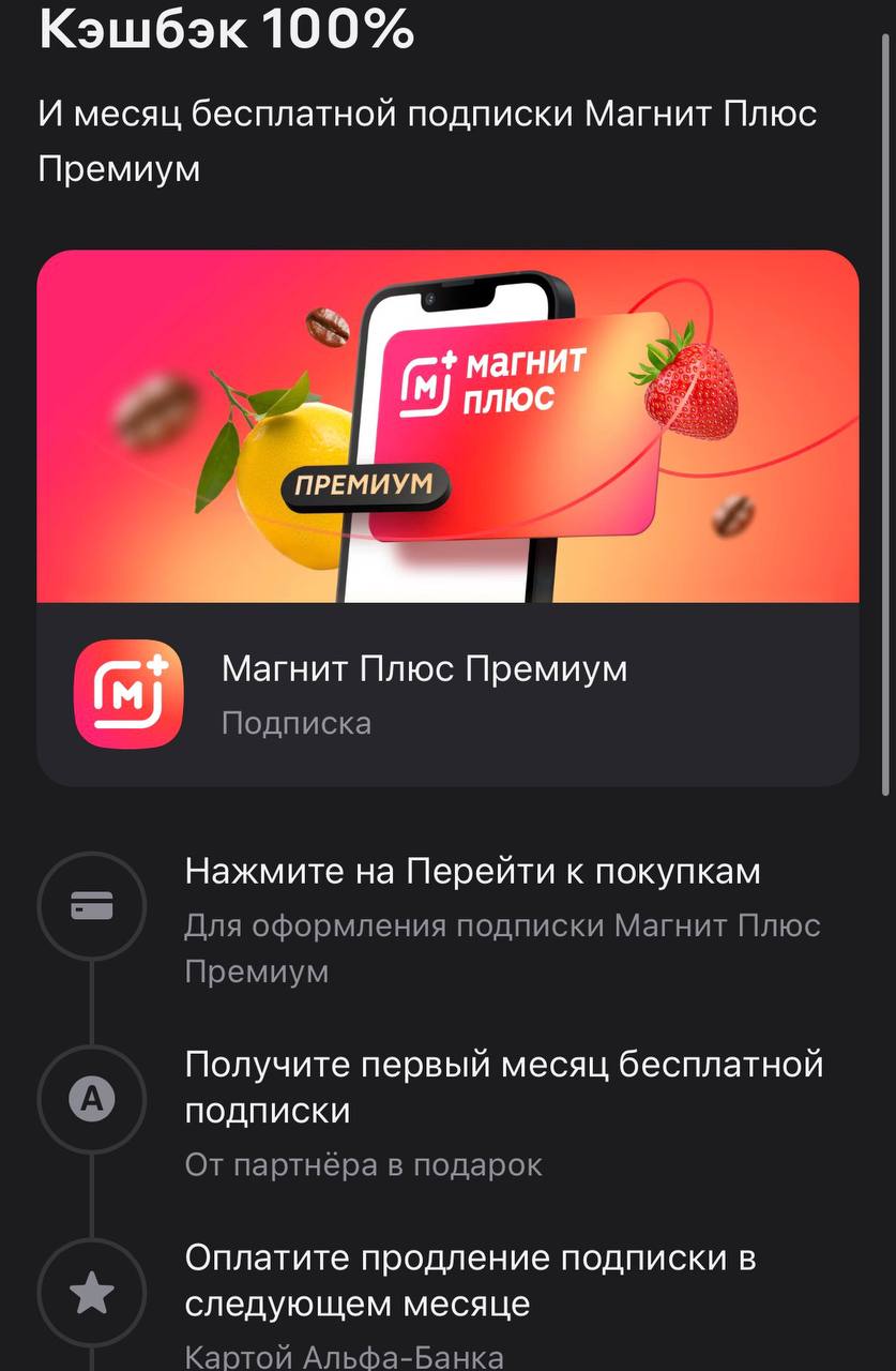 Зашел сегодня в приложение Альфы и наткнулся на предложение, которое будет полезно всем, кто привык закупаться продуктами в «Магните». Сейчас они раздают подписку «Магнит Плюс Премиум» на очень жирных условиях. Это не просто какая-то символическая скидка, а полноценный возврат стоимости плюс бесплатный период на старте. Учитывая, что цены в магазинах не стоят на месте, любая возможность уменьшить итоговый чек за счет дополнительных бонусов — это уже весомый плюс для семейного бюджета.