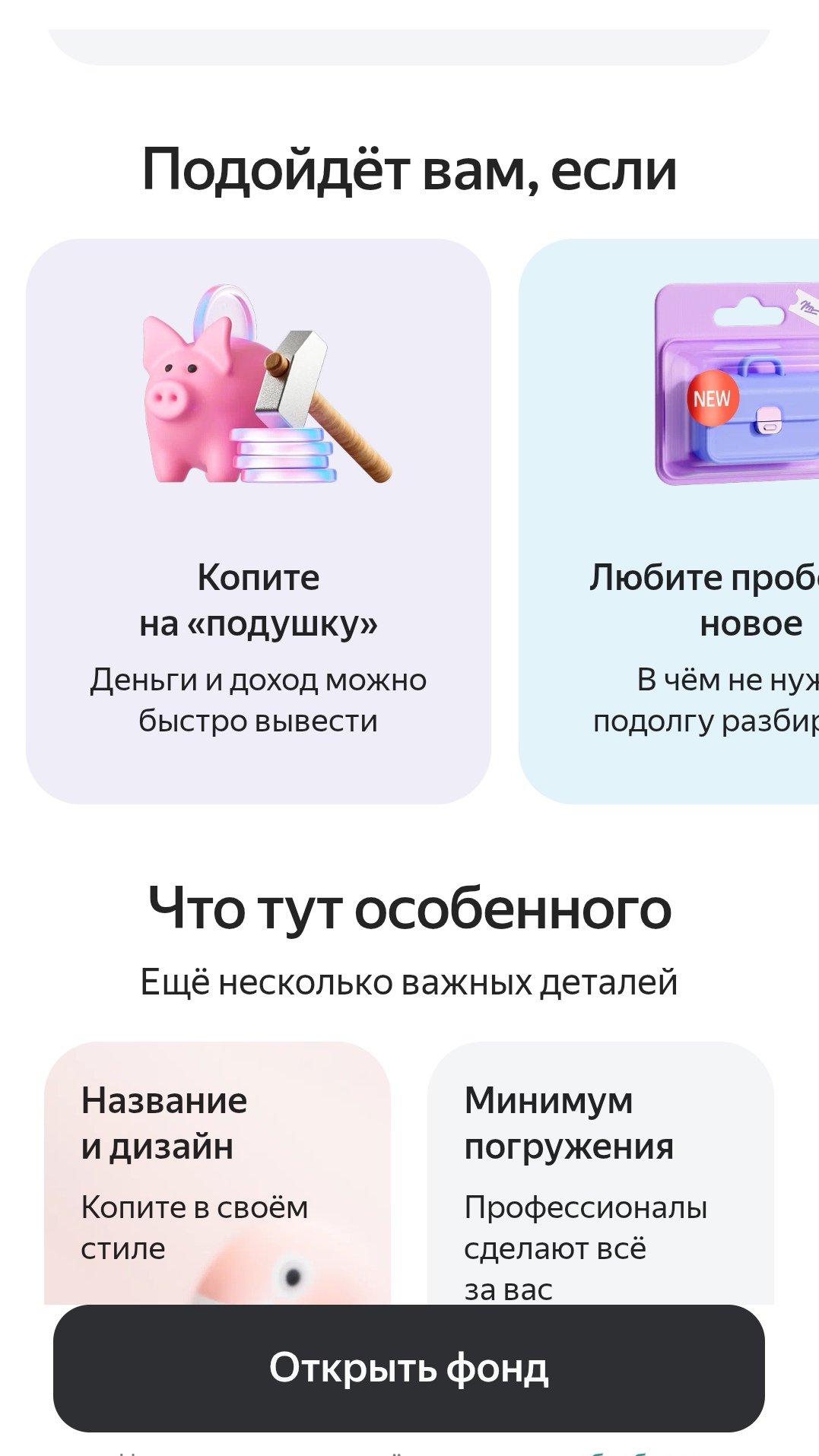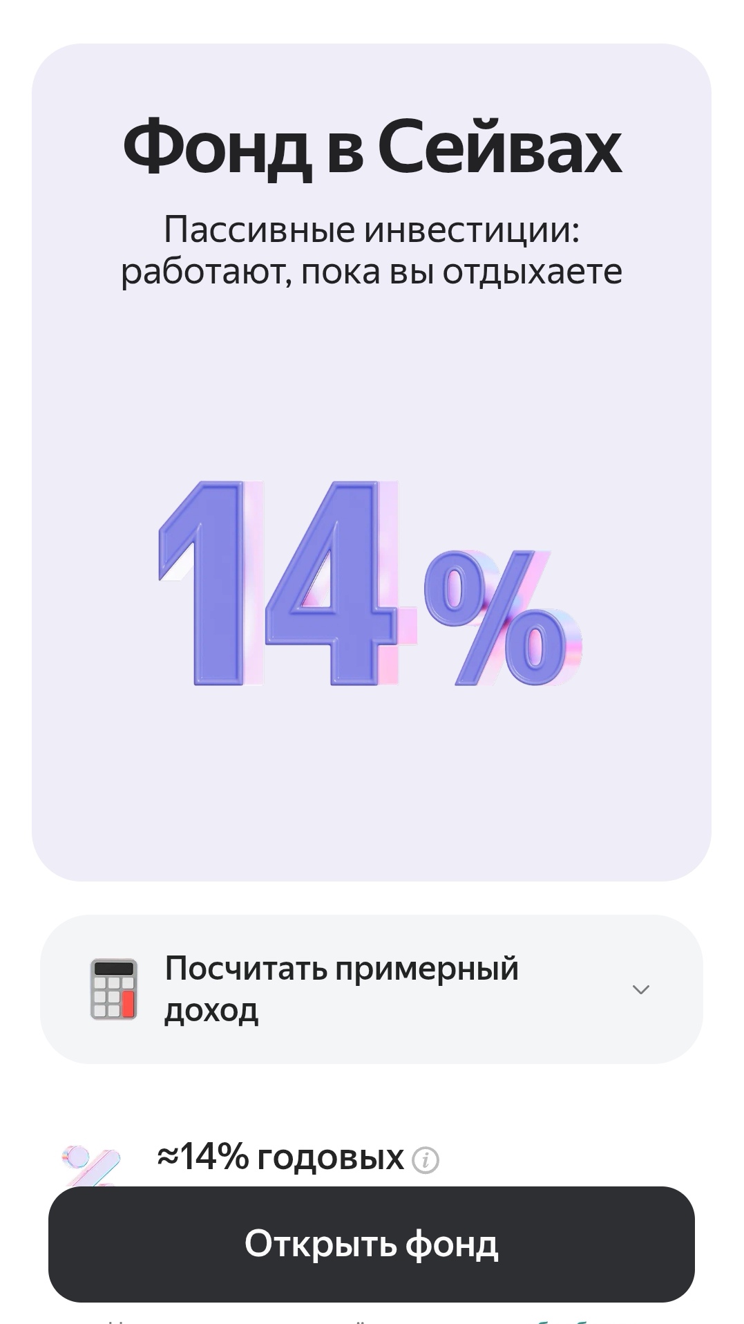 В личном кабинете Яндекс Пэй теперь можно открыть новый Сейв - Фонд.