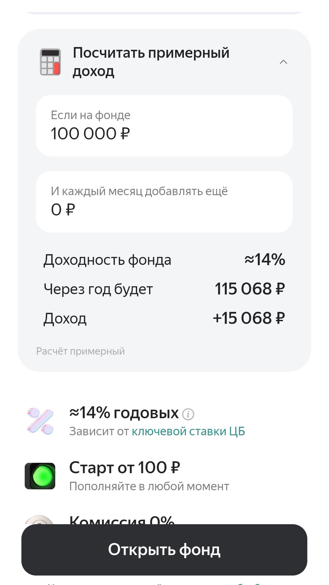 Вот что указано на странице Фонда в приложении Яндекс Пэй