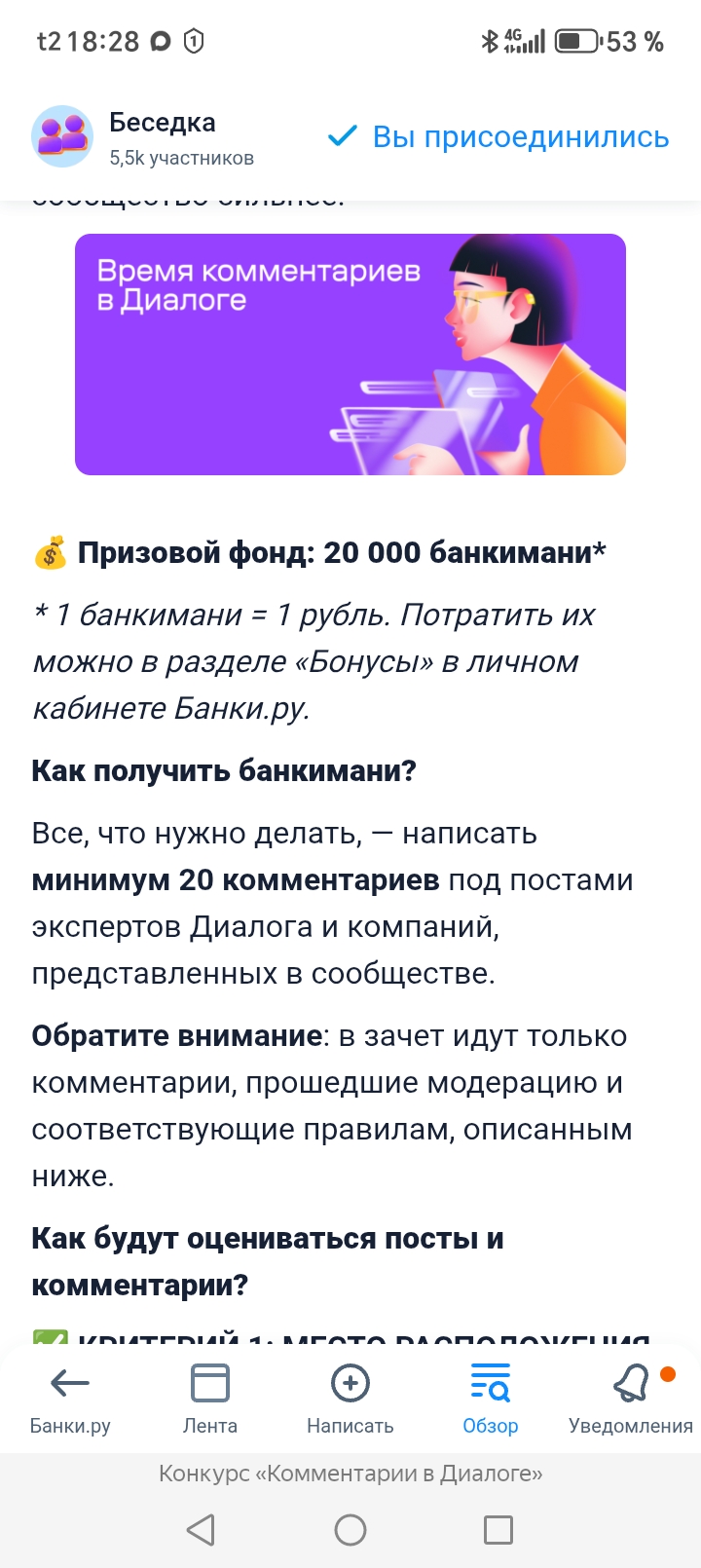 Наш уважаемый Маркетплейс Банки. Ру в Сообществе Диалог предложил конкурс для своих форумчан,, Комментарии в Диалоге ".