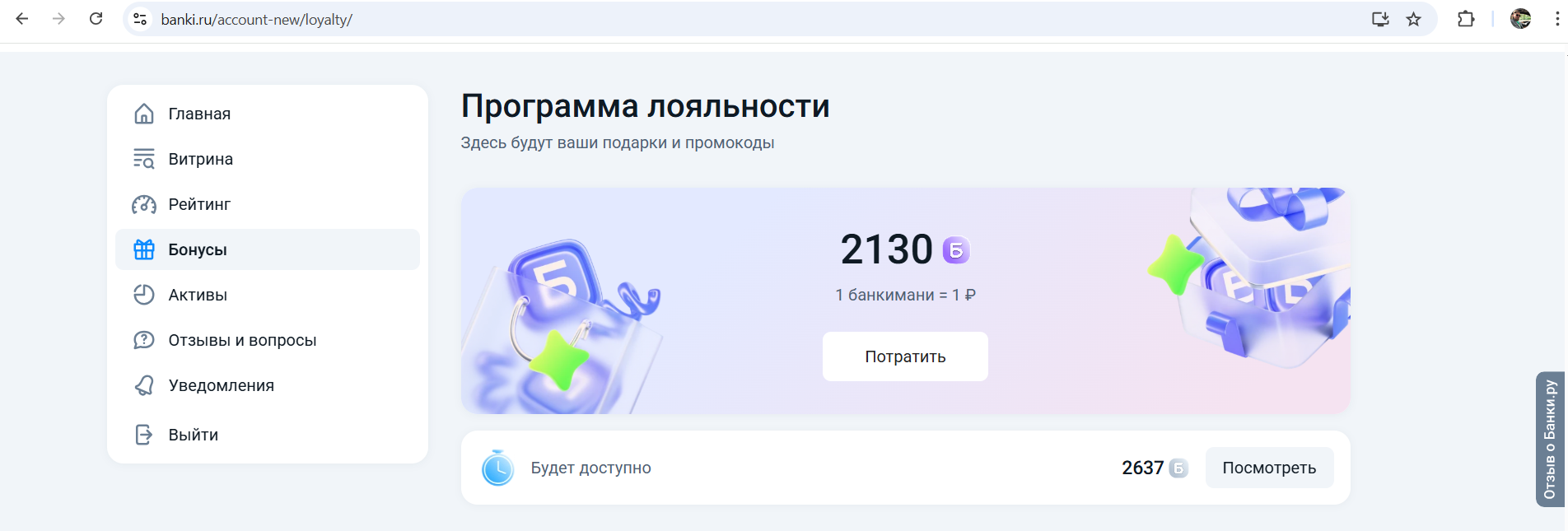 Банкимани начислятся на ваш бонусный счёт и ими можно будет распорядиться, как душе угодно. Это сертификаты или, с недавного времени, даже возможность сделать перевод на карту по СБП. Я вывожу только в качестве сертификатов, так приятнее, словно это некий бонус и подарок. 😊