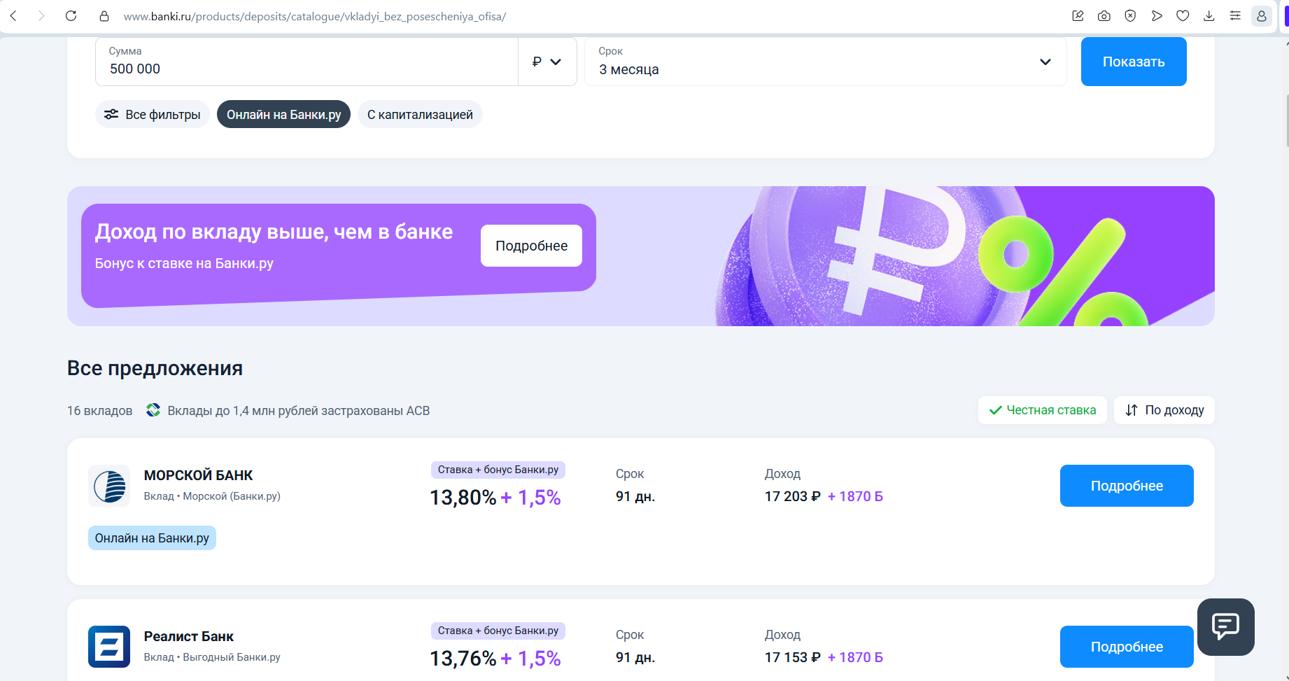 Друзья, сейчас можно открыть вклад онлайн без посещения отделения банка прямо на банки.ру. И дополнительно получить бонус +1,5%.