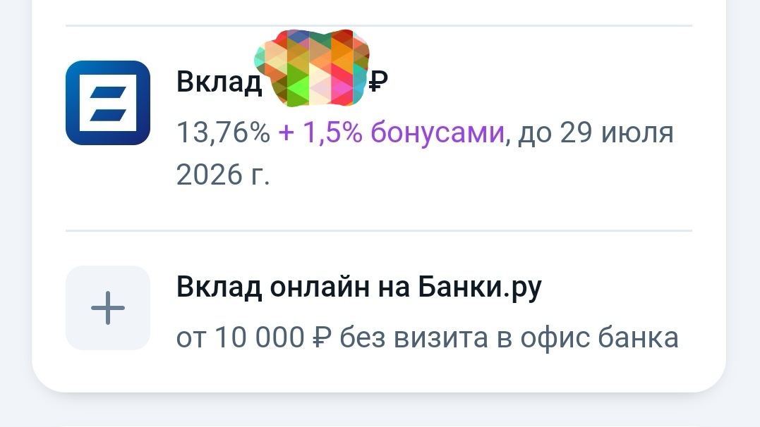Вклад открыл на 91 день. Ставка 13,76% +1,5 % Банкимани(за первый вклад, открытый на платформе Банки.ру).