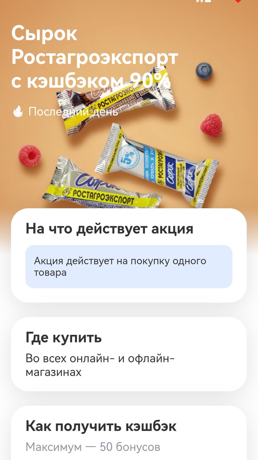 Сегодня в приложении Т-банка снова появилось предложение с кэшбеком на творожный сырок бренда "Ростагроэкспорт".