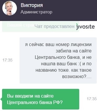 Elios — Export Finance Bank отличился и тут. На его сайте есть онлайн-чат с живым специалистом (так называемый администратор). Обозревателю Банки.ру в качестве администратора «досталась» Виктория.