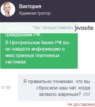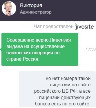 Интересно, что в какой-то момент администратор Виктория начала долго что-то писать в ответ на вопрос, но в итоге просто «выкинула» обозревателя Банки.ру как потенциального любознательного клиента из окна чата и заблокировала возможность использовать функцию чата, а затем и в целом доступ к сайту. Примечательно, что в другом интернет-браузере при регистрации по другому e-mail (впрочем, схожему по написанию с используемым до этого) обозреватель Банки.ру смогла зарегистрироваться и войти в новый личный кабинет снова. Но функция чата ей уже была недоступна, хотя другие сотрудники Банки.ру смогли зарегистрироваться с возможностью общения через чат.