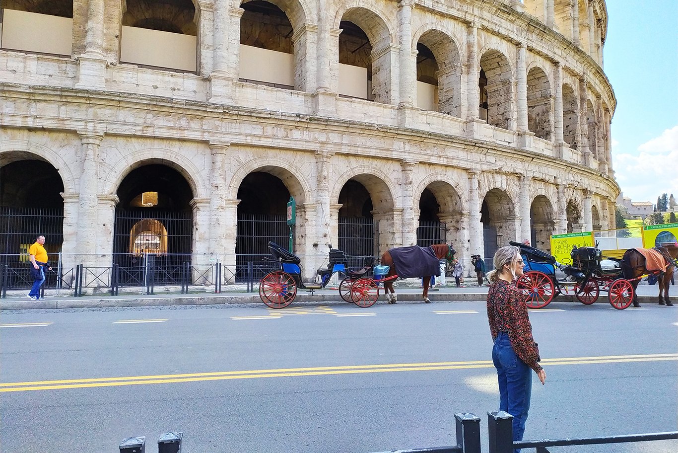 Центр Рима нельзя назвать пустынным: выходной день и отличная погода выгнали людей на променад. Колизей и Форум закрыты, вокруг фонтана Треви — человек 20, но полицейский говорит, что и фонтан собираются закрыть для публики. Римляне и туристы обедают на улице, ни о какой дистанции в один метр речи не идет. Вечером многочисленные фото людей, плотно сидящих на террасах ресторанов, вызовут жесткую негативную реакцию властей.