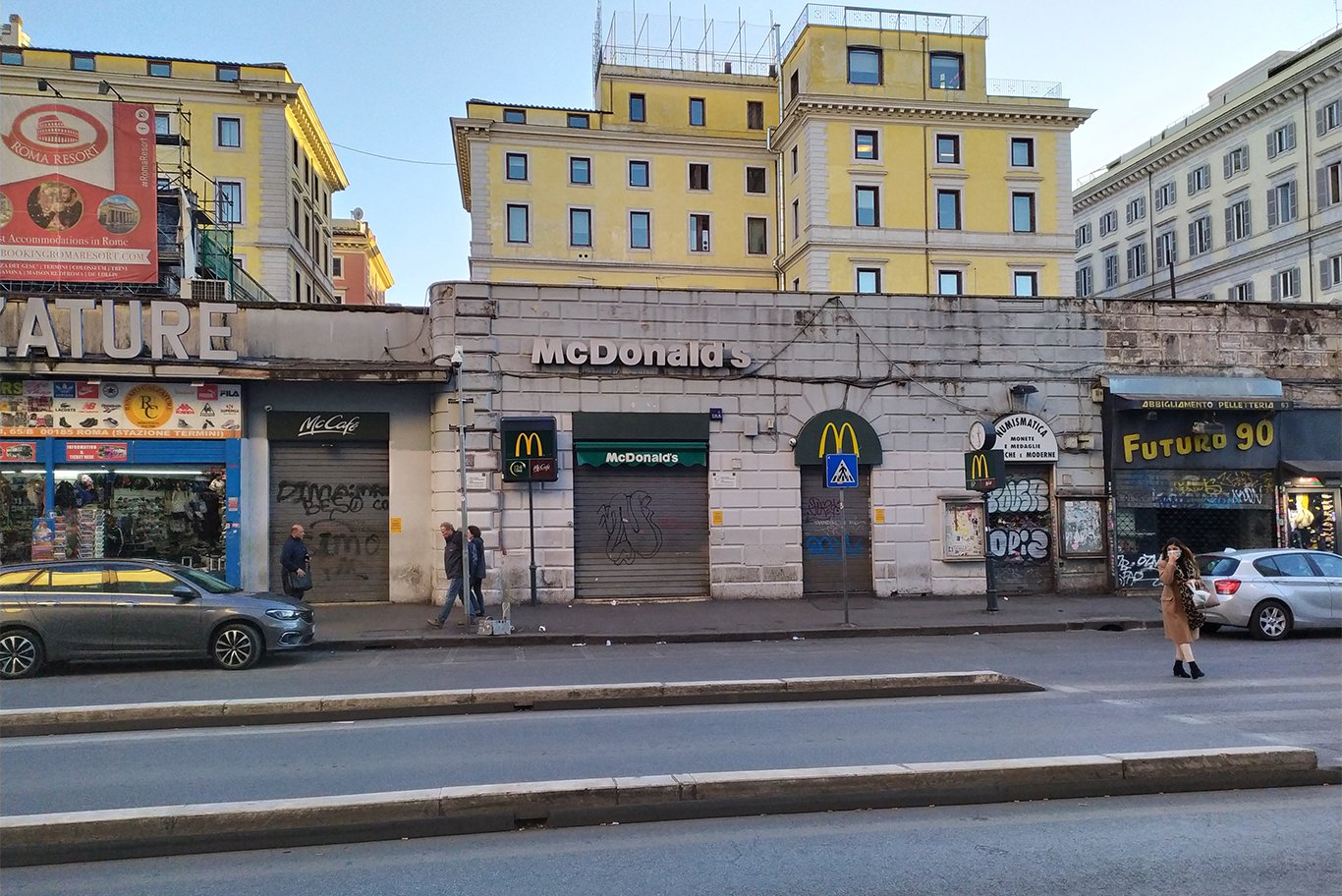 Урок окончен. По дороге домой заворачиваю на главный вокзал Термини: огромная очередь таксистов и ни одного потенциального клиента, редкие пассажиры, половина магазинов и почти все кафе закрыты. От этого на вокзале темнее обычного. Если безлюдный центр прекрасен в ярких лучах весеннего солнца, то полупустой и полутемный вокзал действует угнетающе. Я тороплюсь домой.