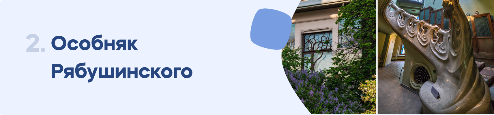На Малой Никитской в тени деревьев притаился особняк Рябушинского — классика русского модерна от архитектора Шехтеля. Первый этаж и экстерьер посвящены морской тематике, второй — воздушной, третий — горной.