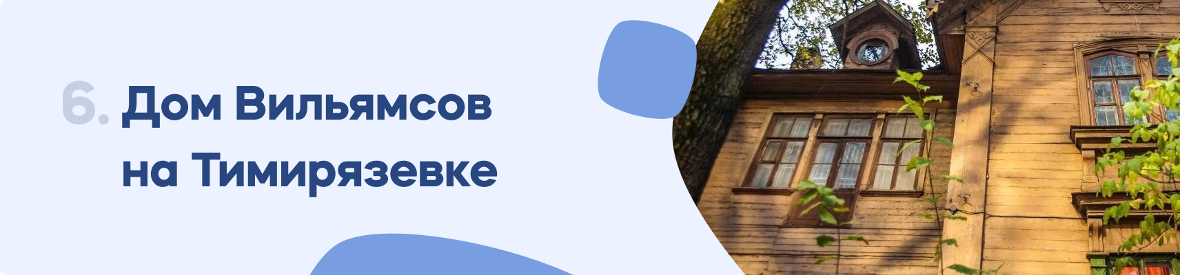Это старый деревянный дом, который находится на территории Тимирязевской академии. Удивительно, но по сей день там живет пятое поколение одной семьи. Немного истории: Петровская (ныне Тимирязевская) земледельческая и лесная академия была основана в 1865 году, а в 1876-м был построен дом академической профессуры, который сейчас и называют домом Шредера-Вильямса. В 1893 году на первом этаже дома поселился Василий Вильямс — выпускник академии, в дальнейшем профессор и директор академии. И с тех пор, вот уже 122 года, там живет его семья.