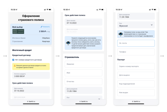 Шаг 3: указать данные о страхователе и объекте недвижимости