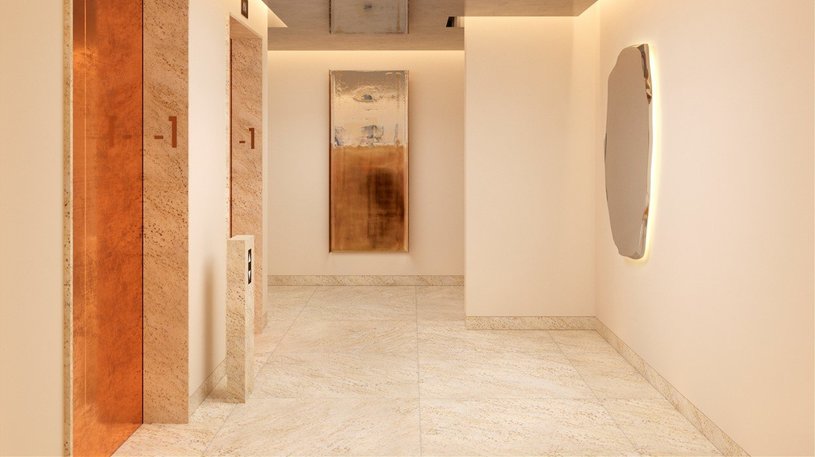 Лобби корпуса Vienna отделано панелями из керамогранита, имитирующими дуб и бук — деревья из знаменитого Венского леса.