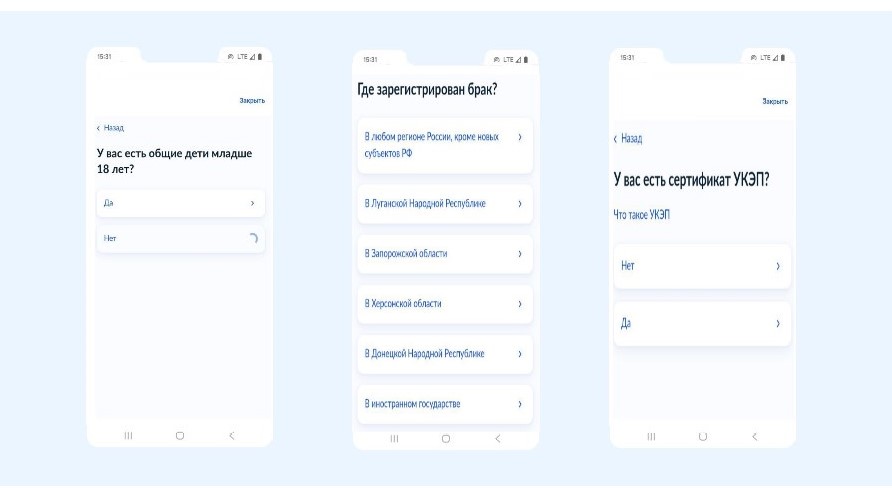 3. Ответьте на вопросы анкеты: есть ли у вас дети, где был зарегистрирован брак, есть ли УКЭП.
