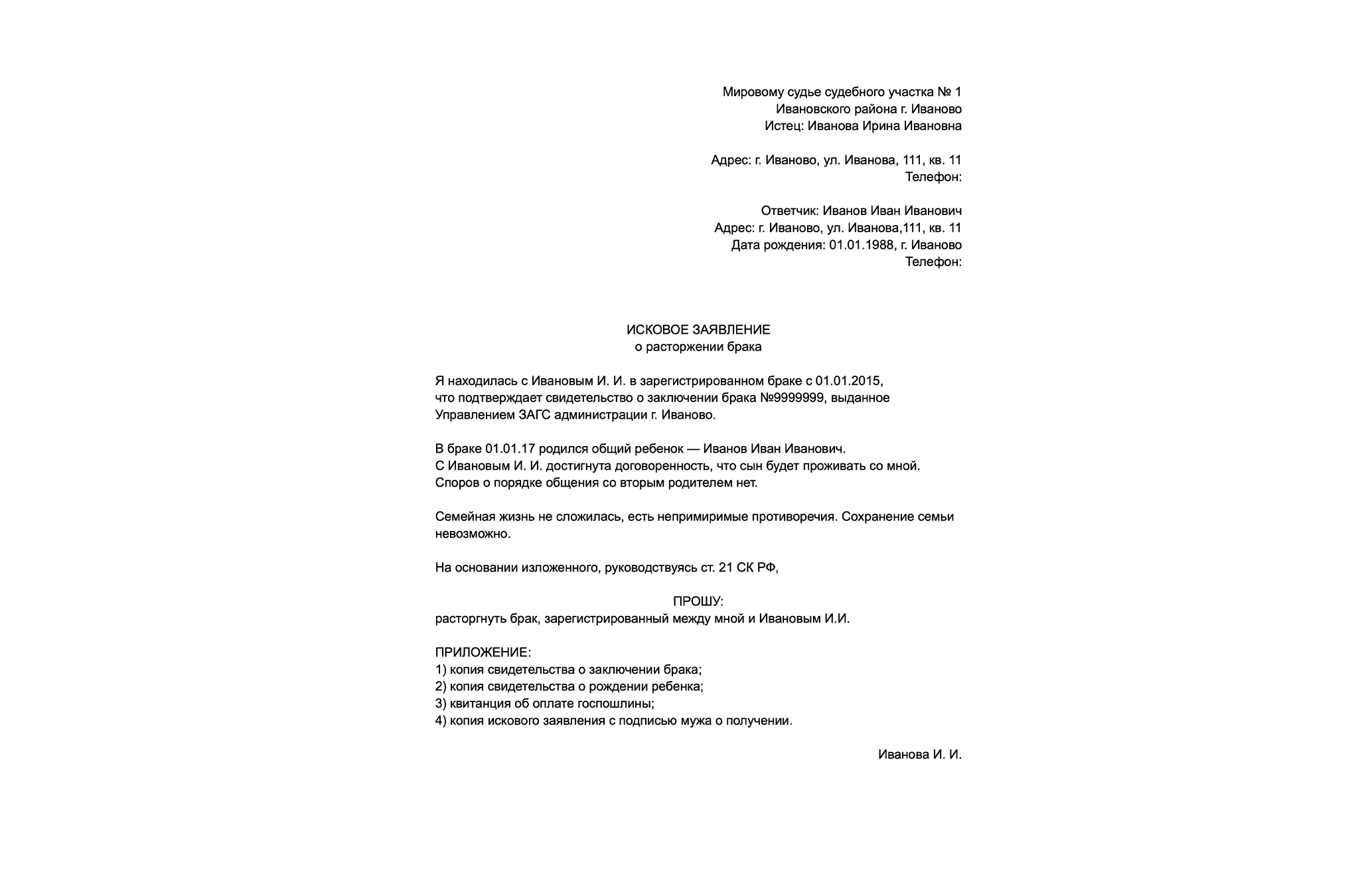 Если споров нет, дело может рассмотреть мировой судья. Если в иск включены имущественные требования на сумму свыше 50 000 рублей или споры о детях, заявление подают в районный суд.