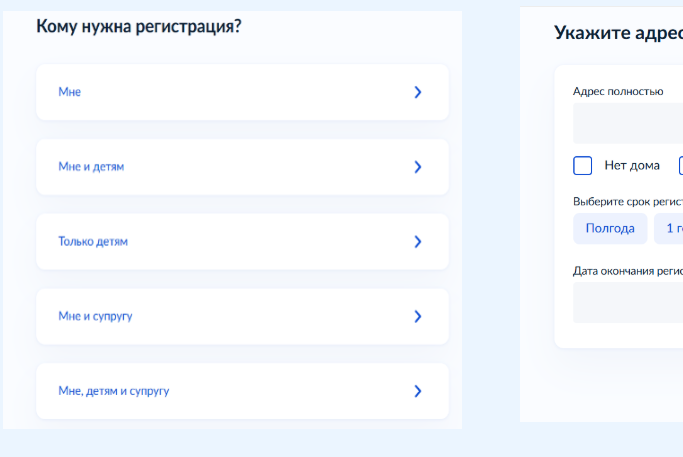 Укажите, кого регистрируете: себя, супруга, детей или всю семью. Если ребенку больше 14 лет, он подает заявление сам.