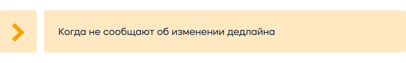 Классно, когда задача делается в срок. Но в реальной жизни часто бывают ситуации, когда по объективной причине не успеваете или просто не можете ее сдать. Чтобы коллеги не переживали, не пинали вас, не засыпали вопросами «Ну когда уже?», заранее предупредите об этом. Не так страшно, что вы сделаете таск позже, гораздо хуже, что про это никто не знает.