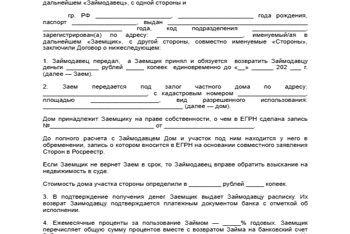 Оформите залог, если он есть. Пропишите, что передаете в качестве обеспечения, приложите документы и согласие всех совладельцев. Укажите, в каких случаях займодатель может обратить взыскание на имущество.
