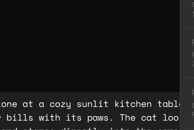 - Нажмите Settings (настройки) → выберите размер видео и напишите то, чего не должно быть в видео во вкладке Negative prompt. Например: blurry, distorted face, extra limbs, mutated paws, glitch effects, low resolution, dark lighting, scary atmosphere, horror style, disfigured cat, messy background, unrealistic proportions, extra eyes, text artifacts, watermark, pixelation, ugly render, oversaturated colors, poorly drawn fur, robotic look.