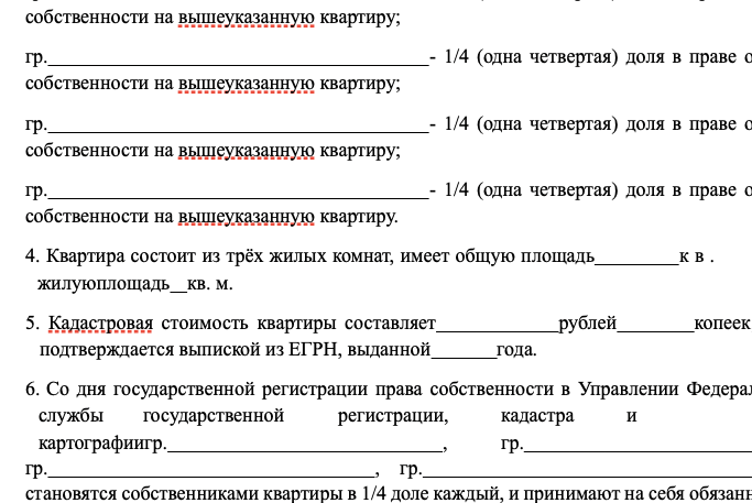 Право общей долевой собственности на квартиру нужно зарегистрировать в ЕГРН. Для этого нужно будет собрать пакет документов и оплатить госпошлину. В 2026 году она составляет 4000 рублей за всех членов семьи.