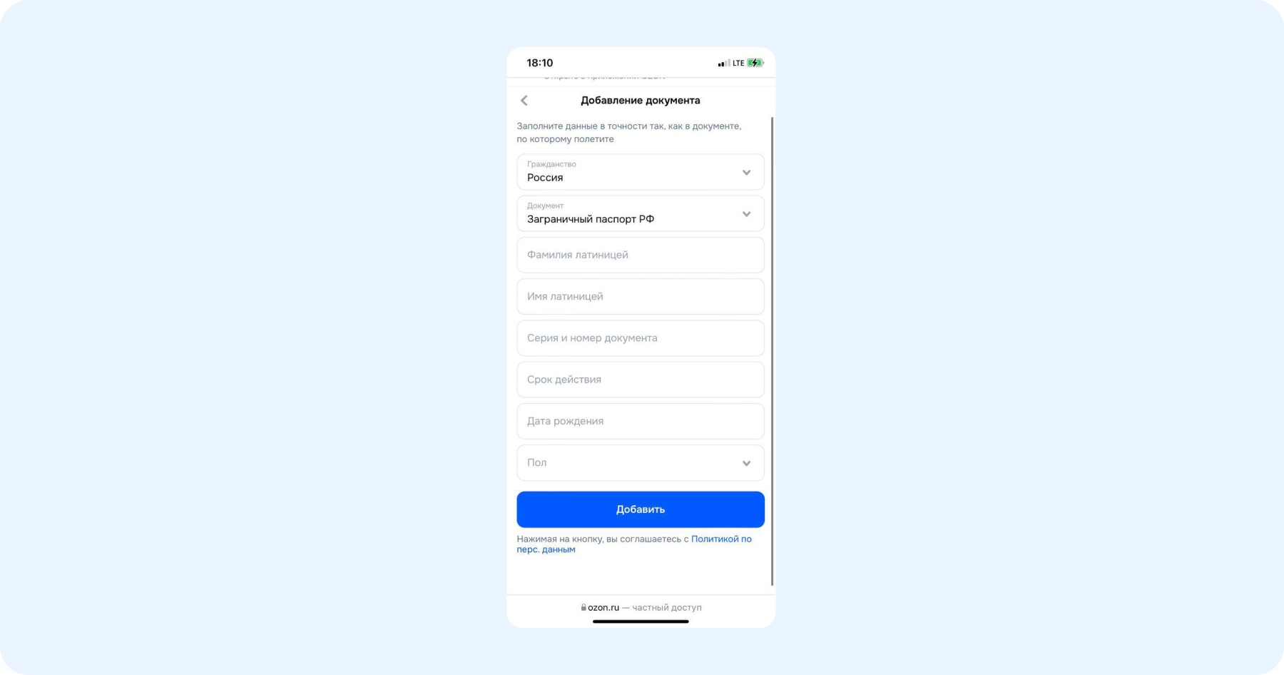 - Латиницей укажите данные пассажира — фамилию, имя, пол, дату рождения, гражданство, а также номер и срок действия паспорта. Нажмите кнопку «Подтвердить».