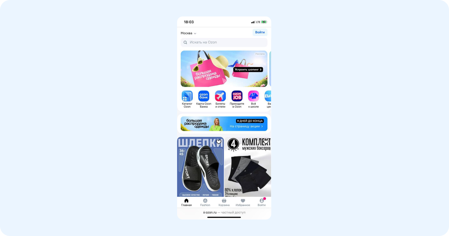 - Зайдите на ozon.ru, на главной странице найдите раздел «Билеты и отели», перейдите в него.