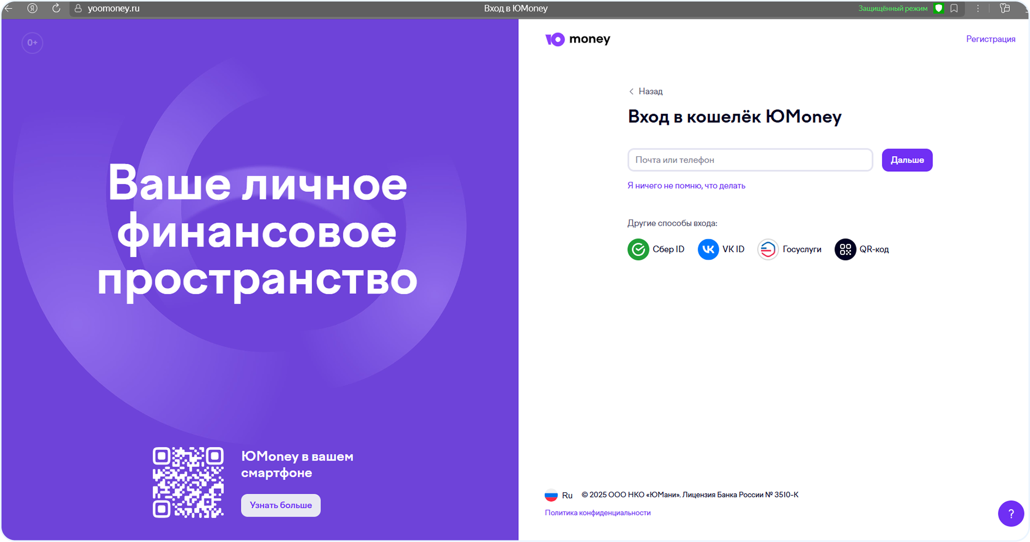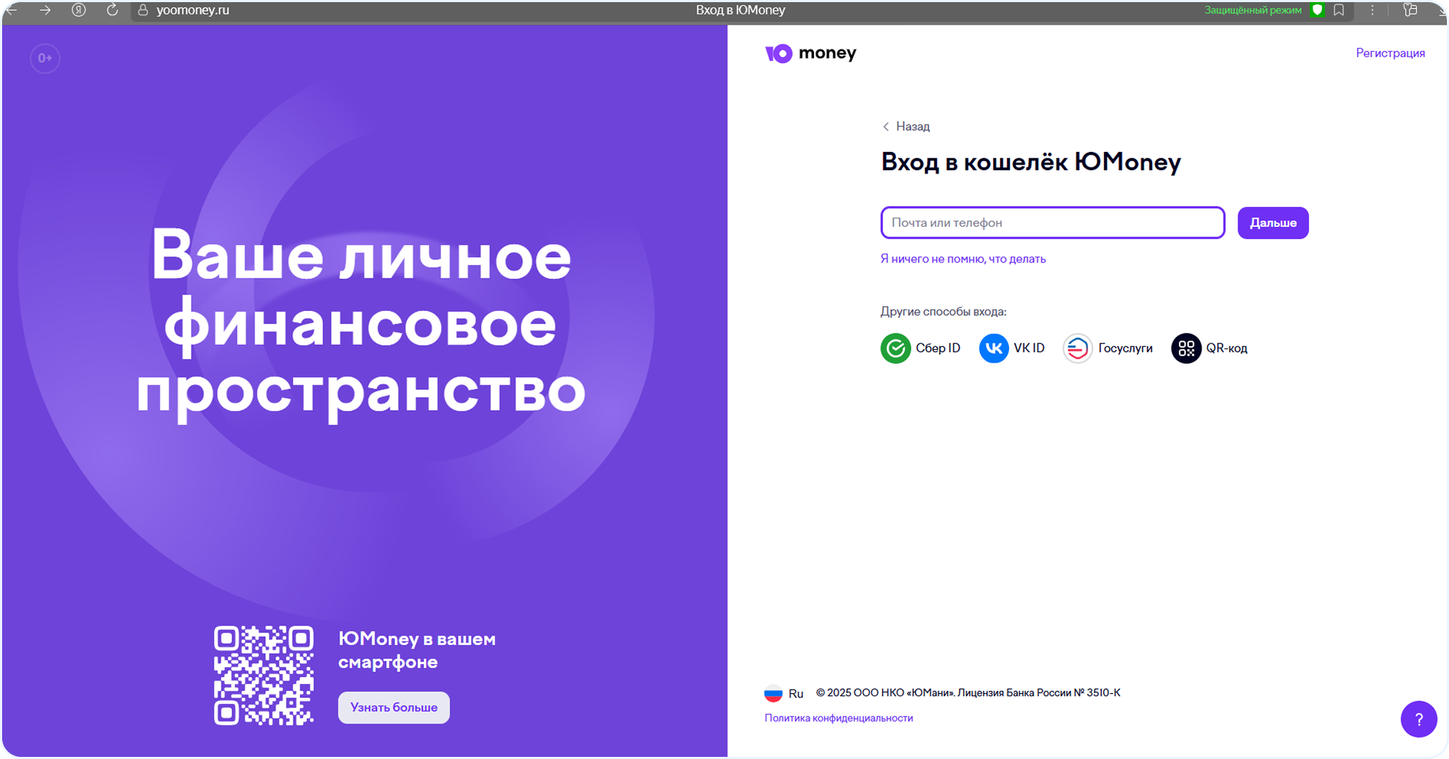 Это способ подходит для тех пользователей, кто входит в профиль на сайте c другого устройства и у кого установлено приложение ЮМoney на смартфоне. Чтобы войти по QR-коду: