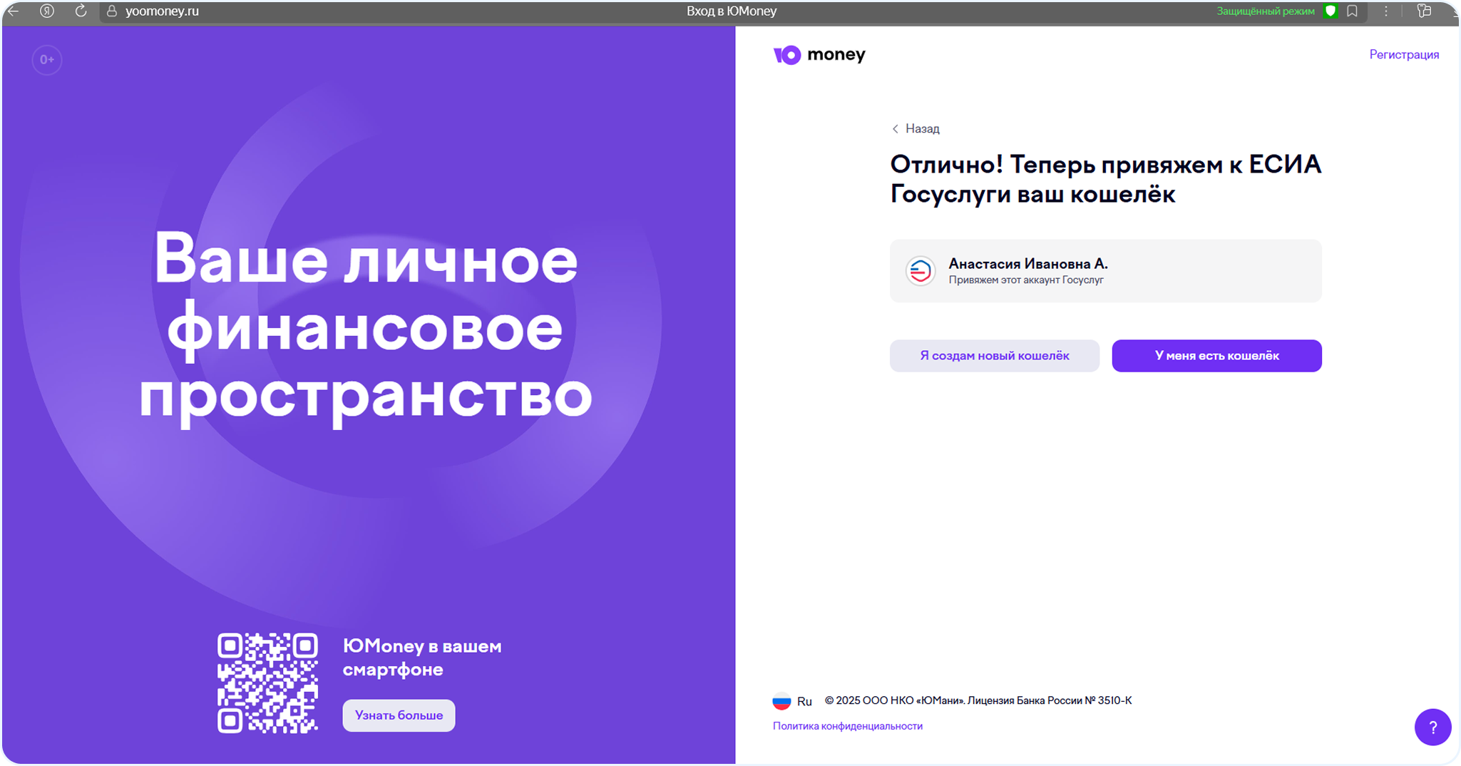 - Готово! Вы вошли в свой профиль ЮMoney.