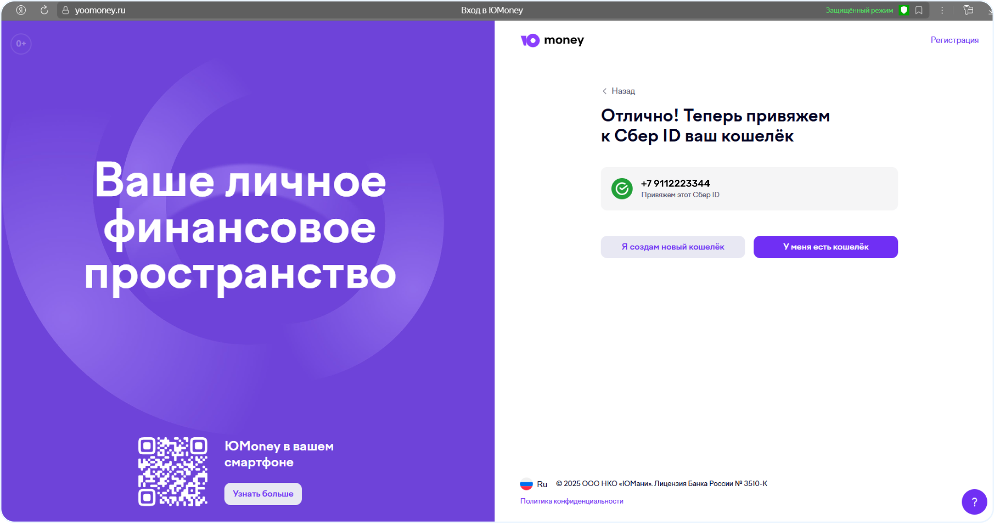 - Готово! Теперь вы можете привязать к Сбер ID свой кошелек либо создать новый.