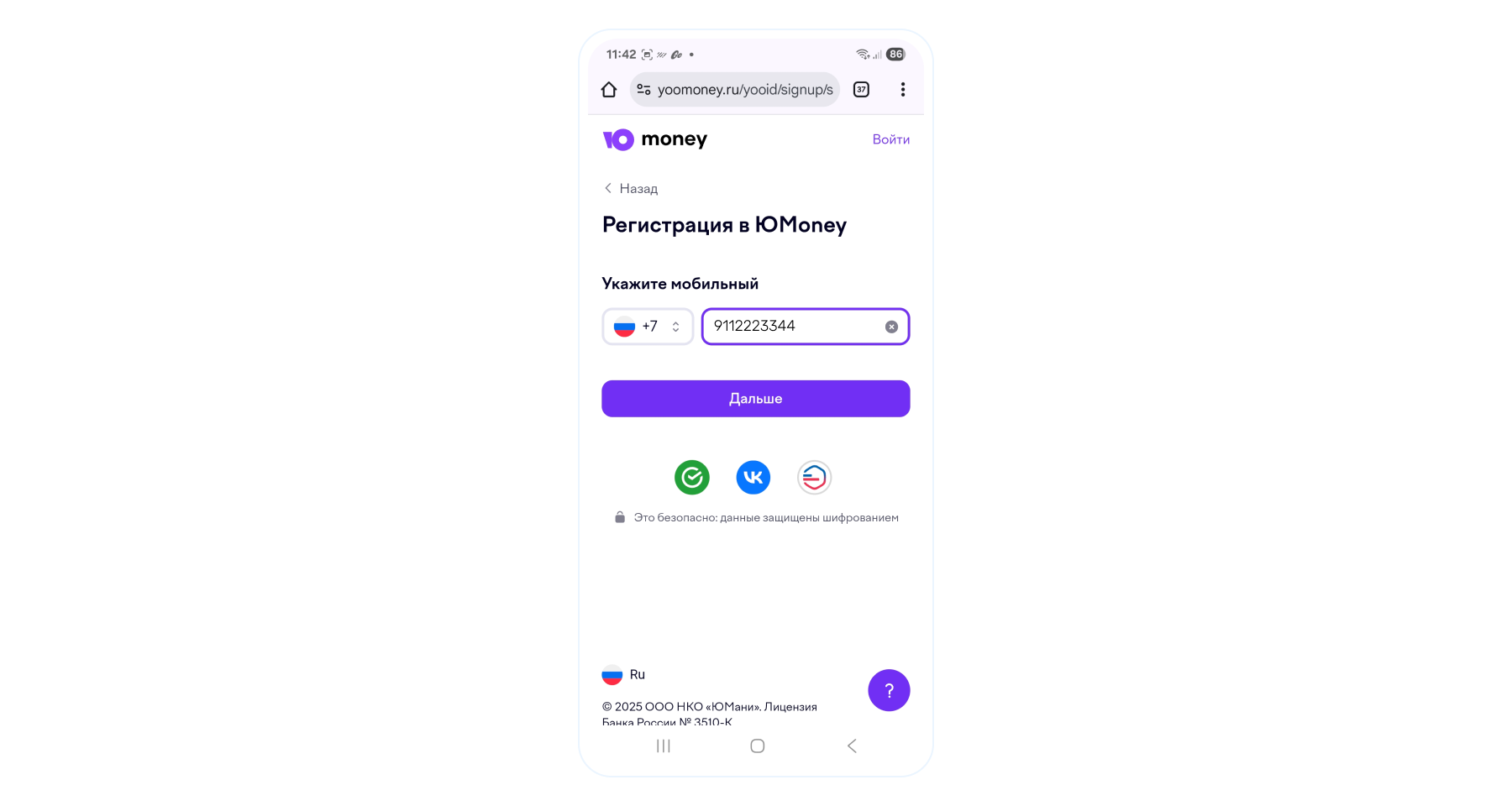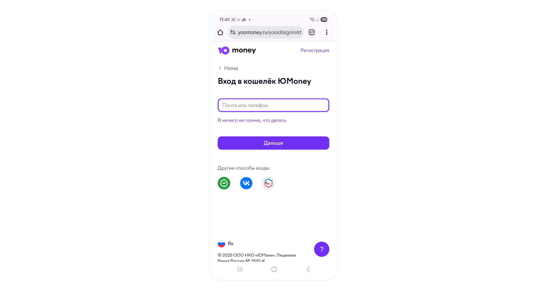 Еще один способ входа в кошелек «ЮМани» — с помощью VK ID. Для этого: