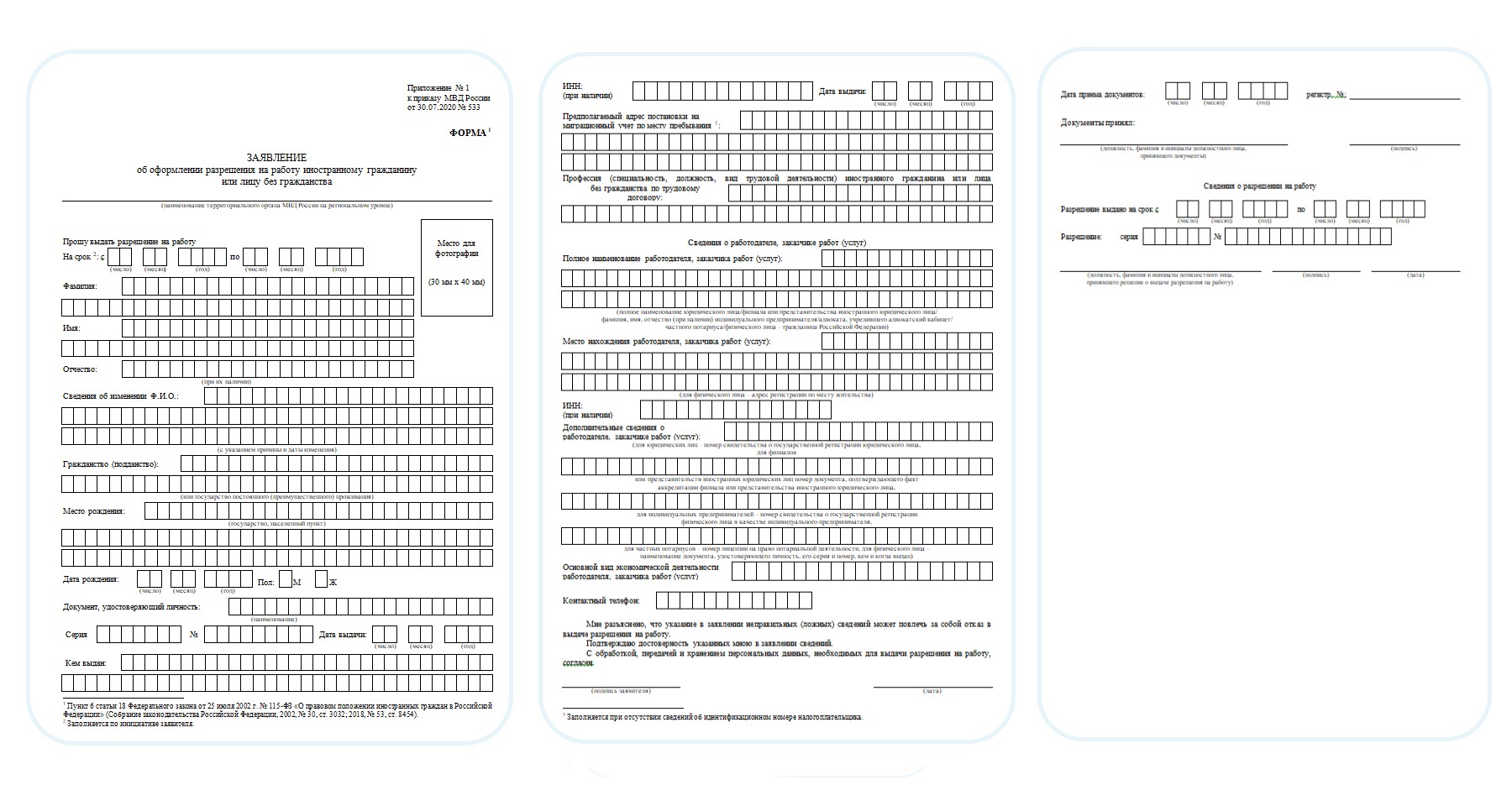 | Заявление о выдаче разрешения на работу | Всегда для визовых иностранцев; для высококвалифицированных специалистов (ВКС) — по спецрежиму |