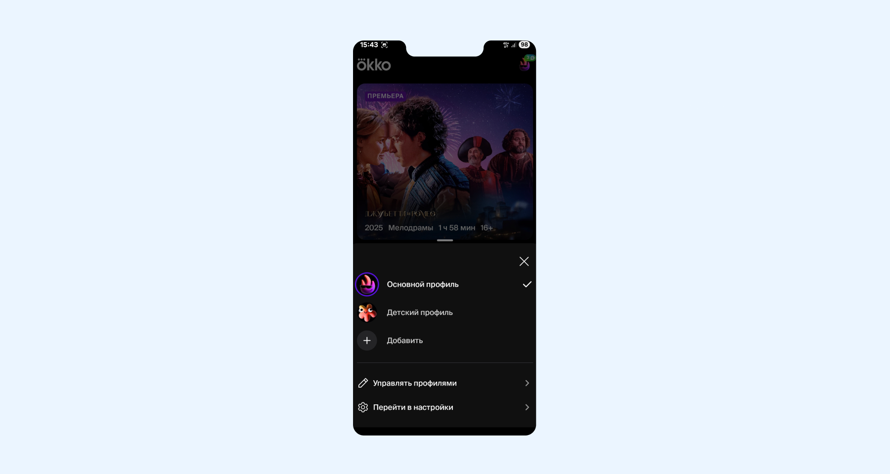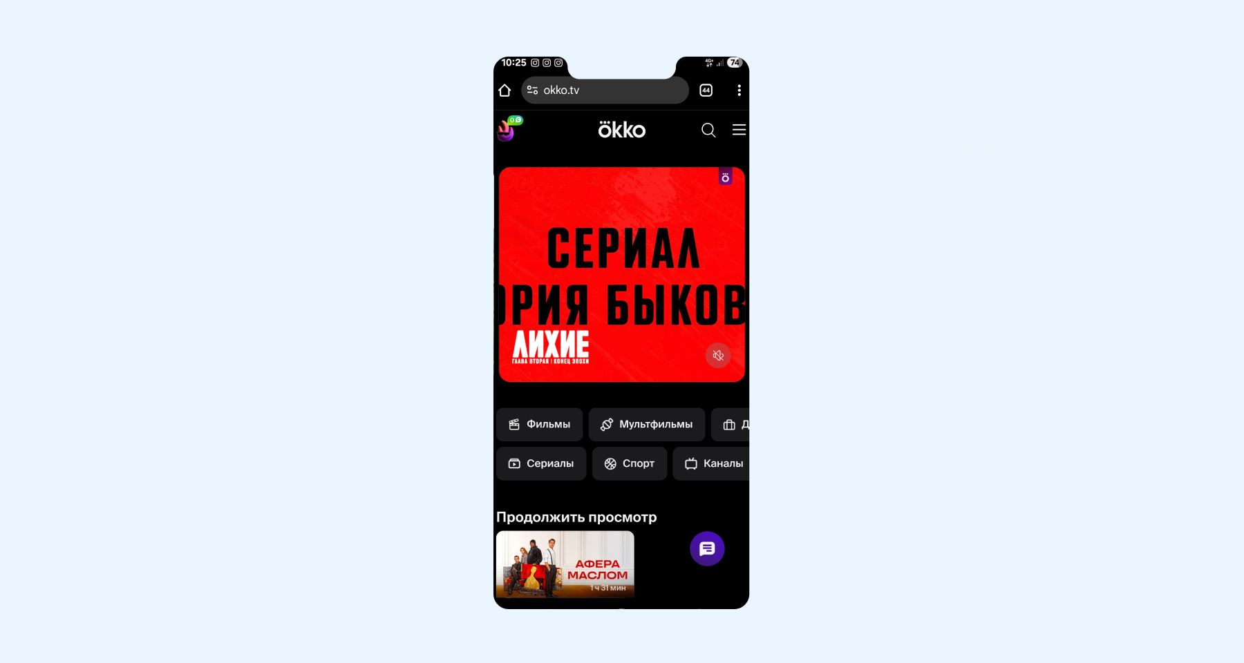 - Зайдите в приложение или на официальный сайт Okko.
