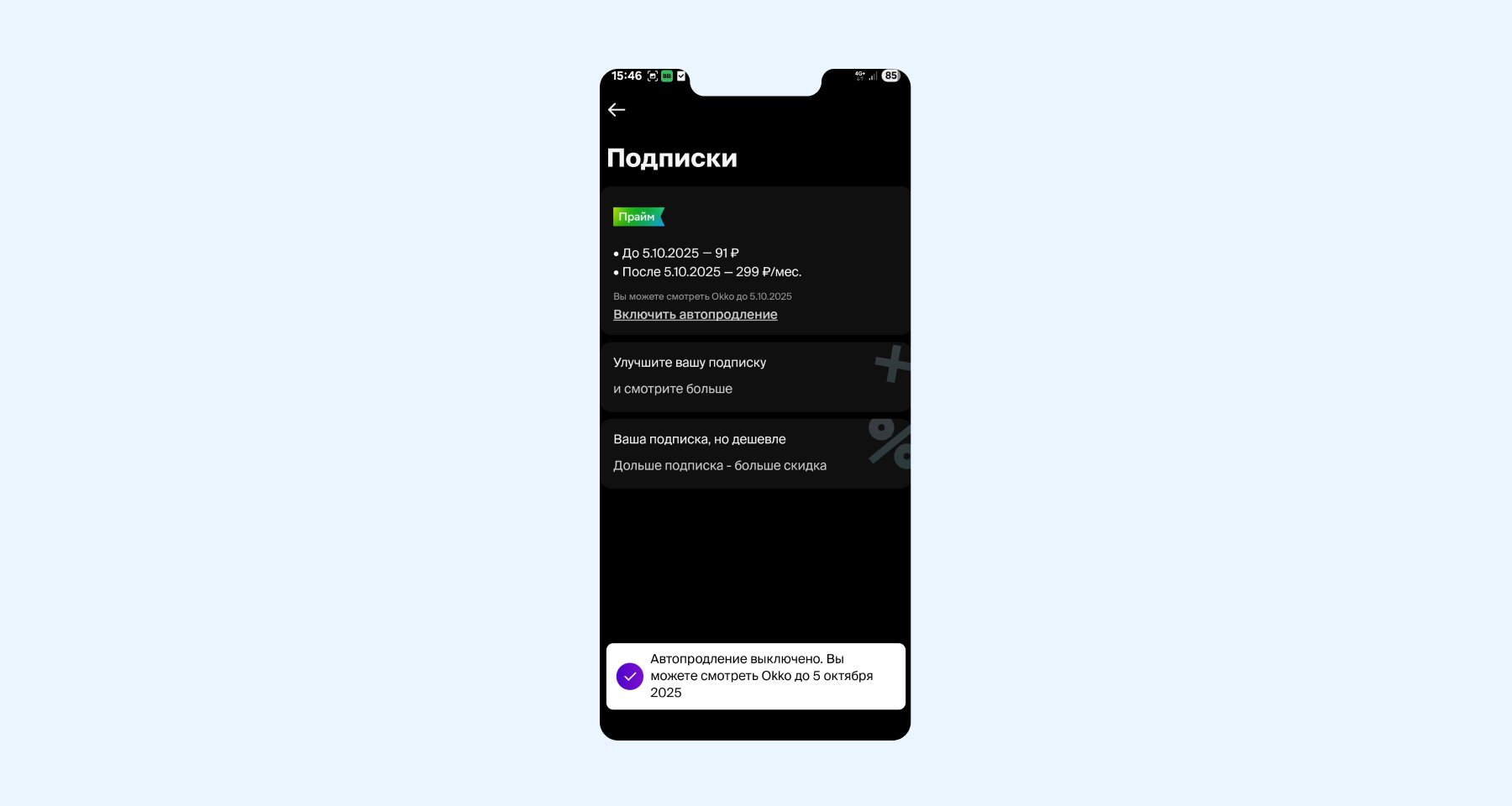 - Готово! Автопродление подписки отключено.