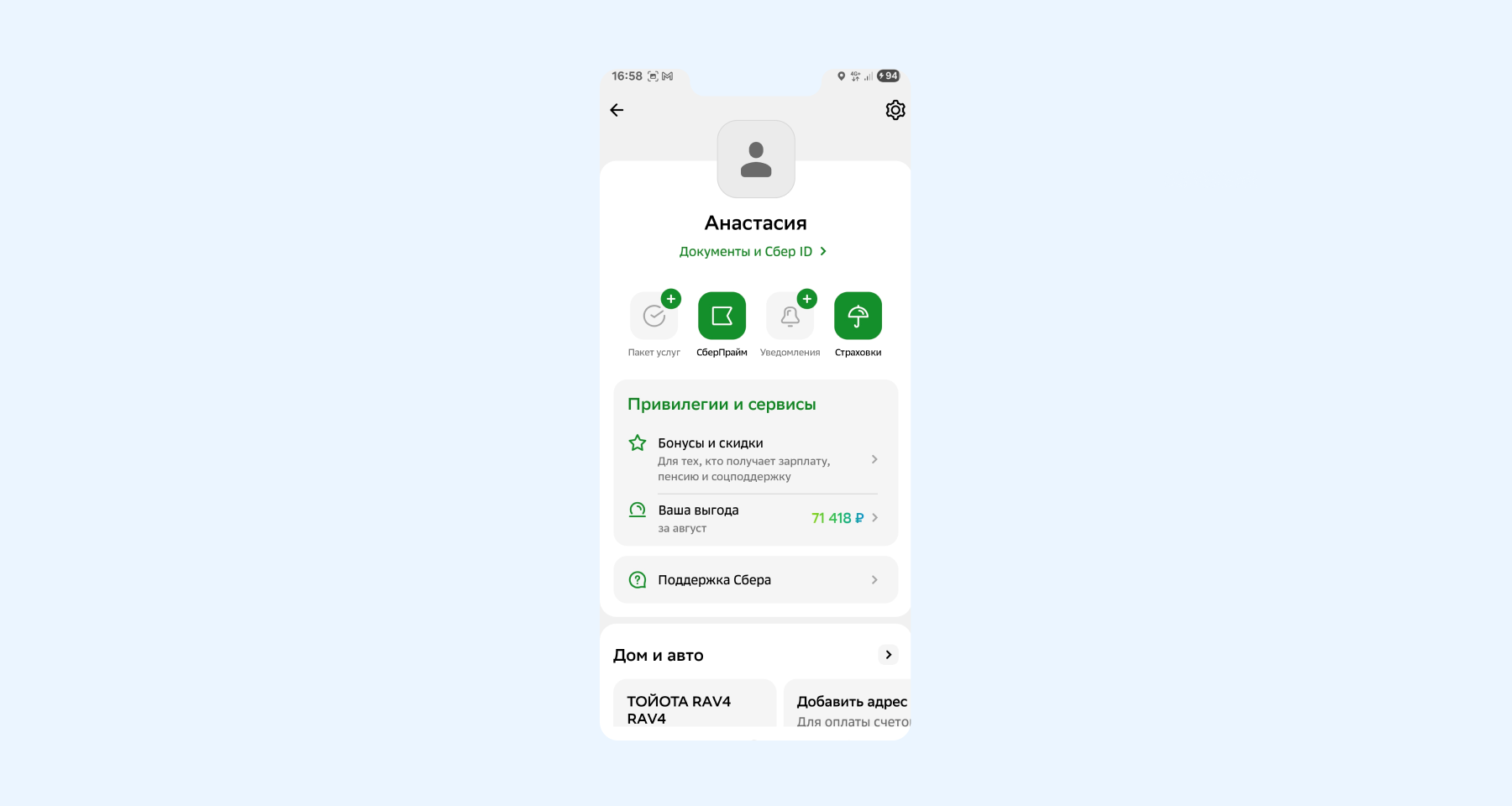 - Перейдите в раздел «Профиль» в левом верхнем углу и выберите «СберПрайм».