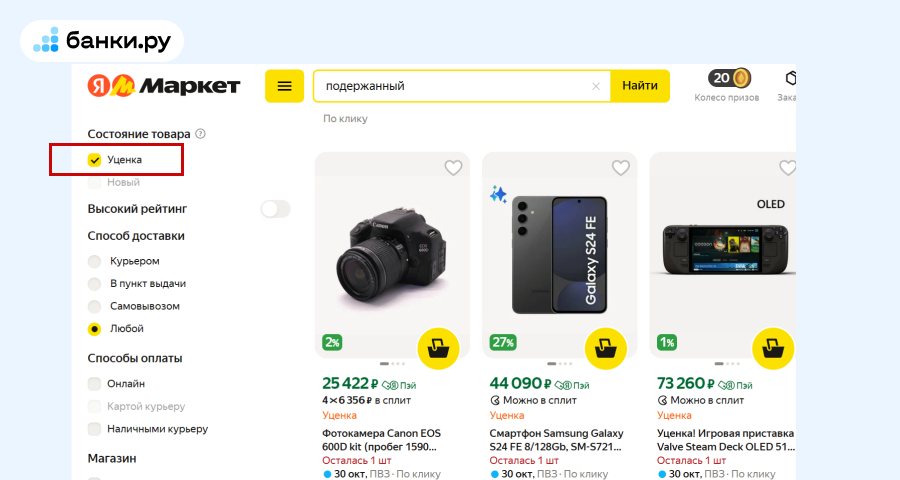На «Яндекс. Маркете» выбор гораздо больше. Можно искать по названию продавца-ресейлера (сервисы, которые выкупают аппараты для перепродажи) или через фильтр «Уценка». Перед продажей телефон проходит проверку. Специалисты пробивают IMEI (уникальный 15-значный номер-идентификатор) телефона по закрытым и открытым базам данных и черным спискам. Также проверяется, отвязано ли устройство от Apple- и Google-аккаунтов и снят ли ключ блокировки экрана.