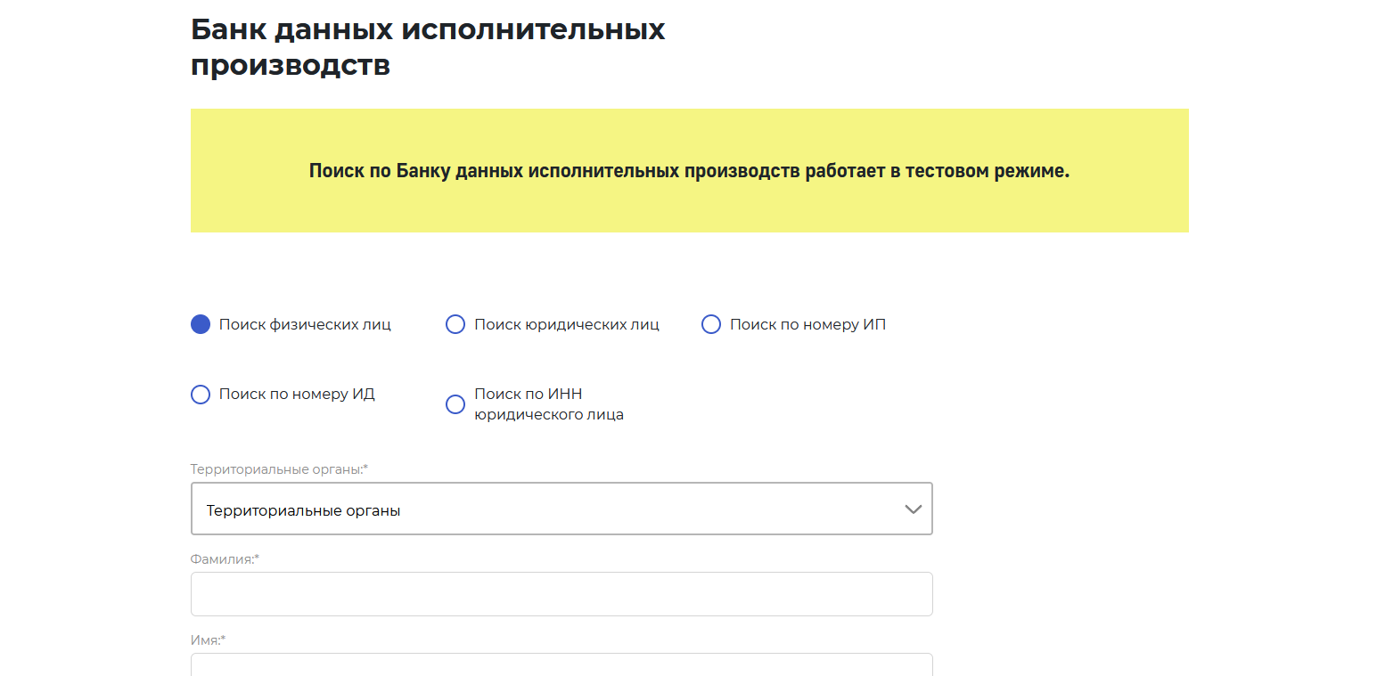 Чтобы проверить, передавали ли банки или МФО информацию о вас в Службу судебных приставов для взыскания задолженности, можно воспользоваться банком данных исполнительных производств на официальном сайте ФССП. Для этого необходимо перейти по ссылке, ввести требуемые данные в форму и нажать кнопку «Найти».