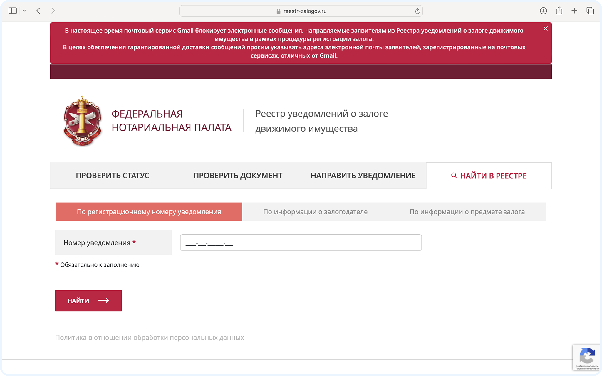 На сайте нотариальной палаты в разделе «Реестр уведомлений о залоге движимого имущества» есть возможность проверить автомобиль на залог. В первой строке введите VIN, и если вы найдете авто в реестре, значит, оно в залоге.