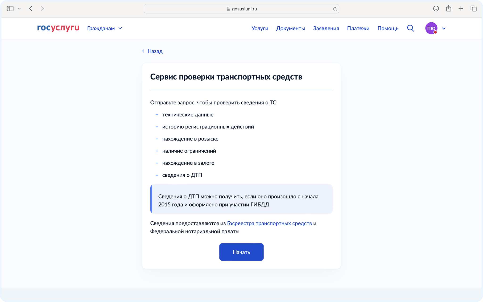 Данные есть в Госреестре транспортных средств и Федеральной нотариальной палате. Сервис проверки транспортных средств — здесь. Нажимайте «начать» и следуйте инструкциям.