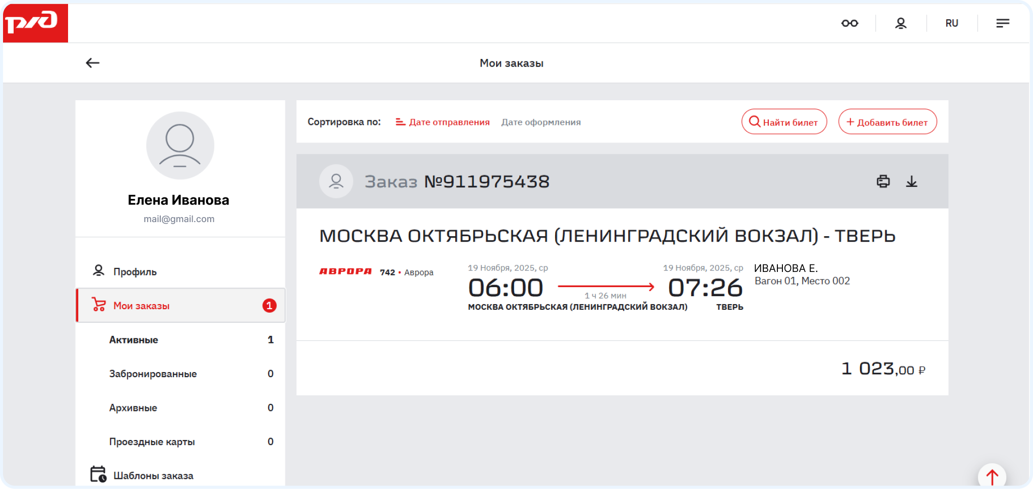 - Войдите в учетную запись на сайте ticket.rzd.ru.