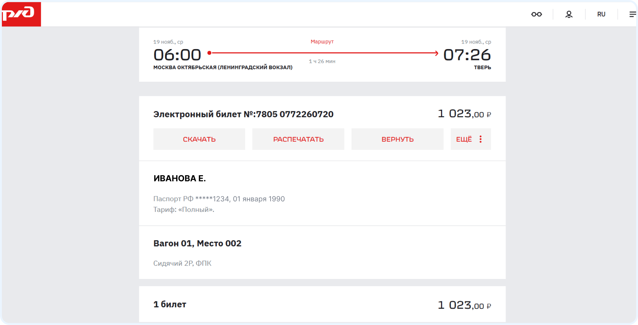 Как вернуть билет в приложении «РЖД Пассажирам»