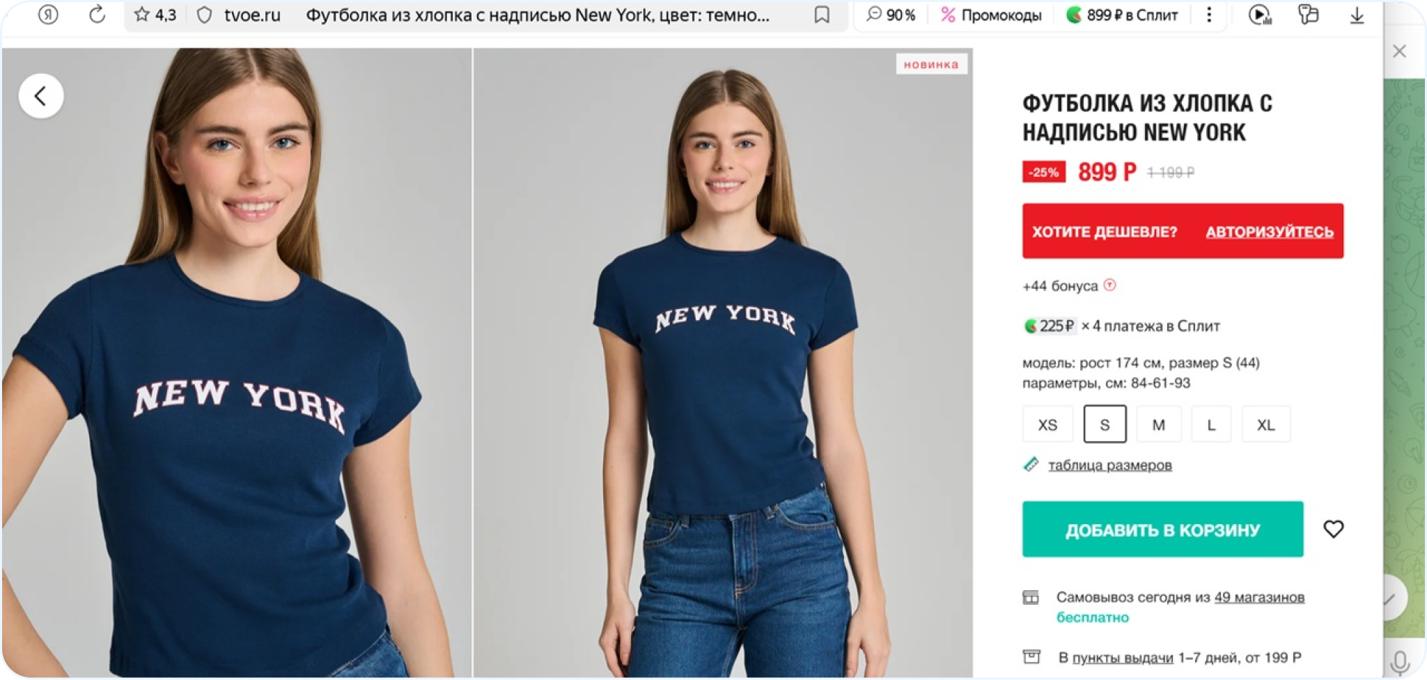 | Футболка женская с надписью New York от «Твое» | 899 | 899 | 625 (Ozon) |