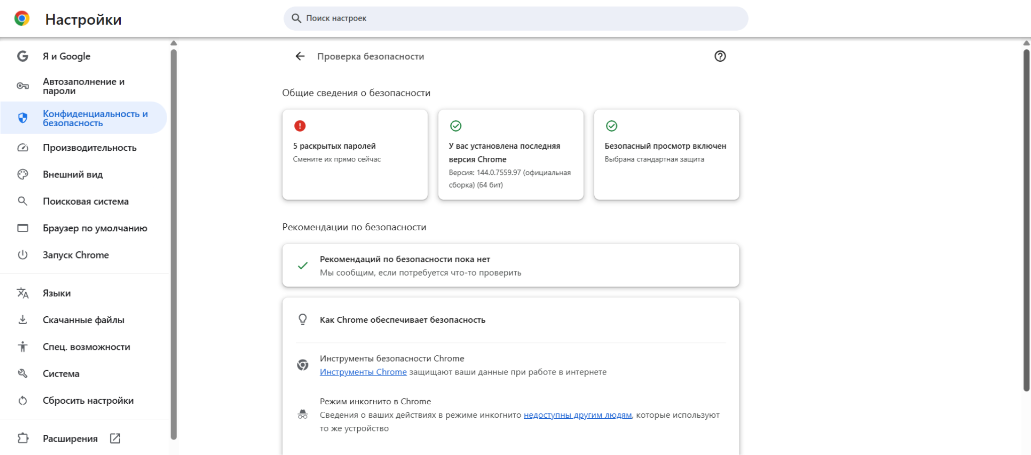 Чтобы проверить безопасность ваших данных через Google Chrome, следуйте такой инструкции: