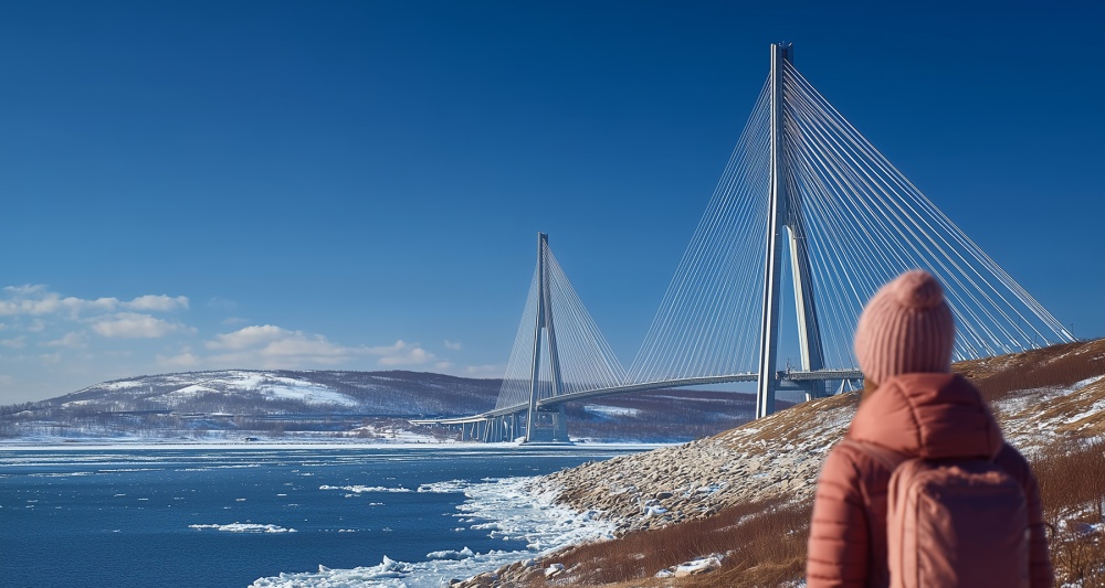 Для путешественников может быть интересен и необычный мост через Амурский залив. Его особенность в том, что проходит от всего в шести метрах над водой — при определенном ракурсе кажется, что он лежит на воде. Зимой среди льдов такая дорога выглядит особенно впечатляющей.
