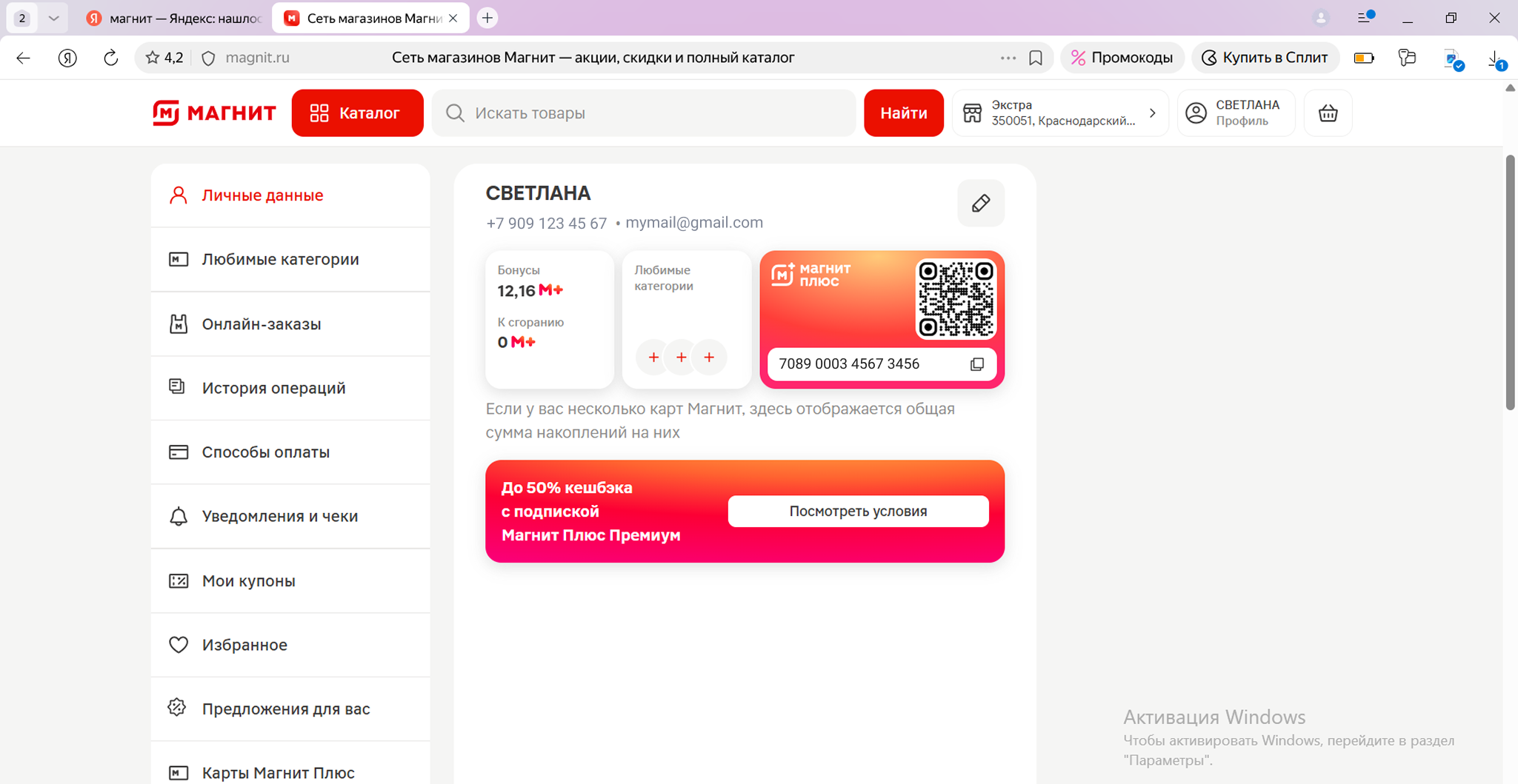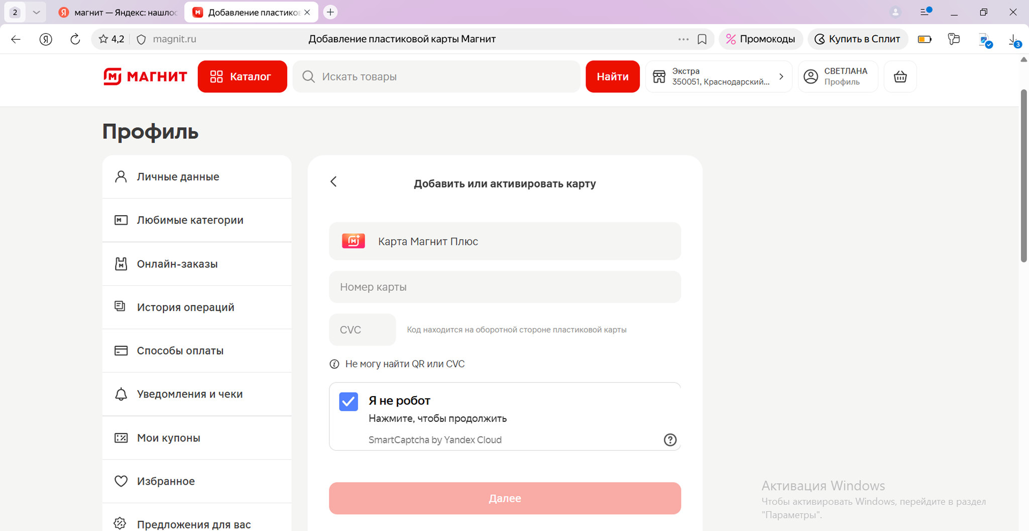 - Активация возможна на официальном сайте или в приложении «Магнит», а также через службу поддержки. Потребуется указать свой номер телефона, имя, дату рождения и электронный адрес.