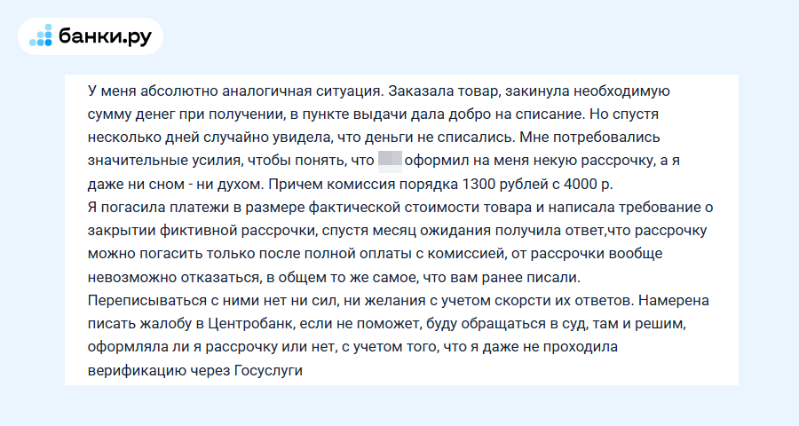 Такая история — не единичный кейс. В Народном рейтинге многие пользователи оставляют жалобы на условия оплаты частями, которые предоставляет маркетплейс. Главные претензии: рассрочка подключается «незаметно», отменить ее не получается, маркетплейс отправляет разбираться в техподдержку, поскольку финансовый продукт оформляет не он, а посредник. Разбираемся, законно ли это и как не платить комиссию в таком случае.