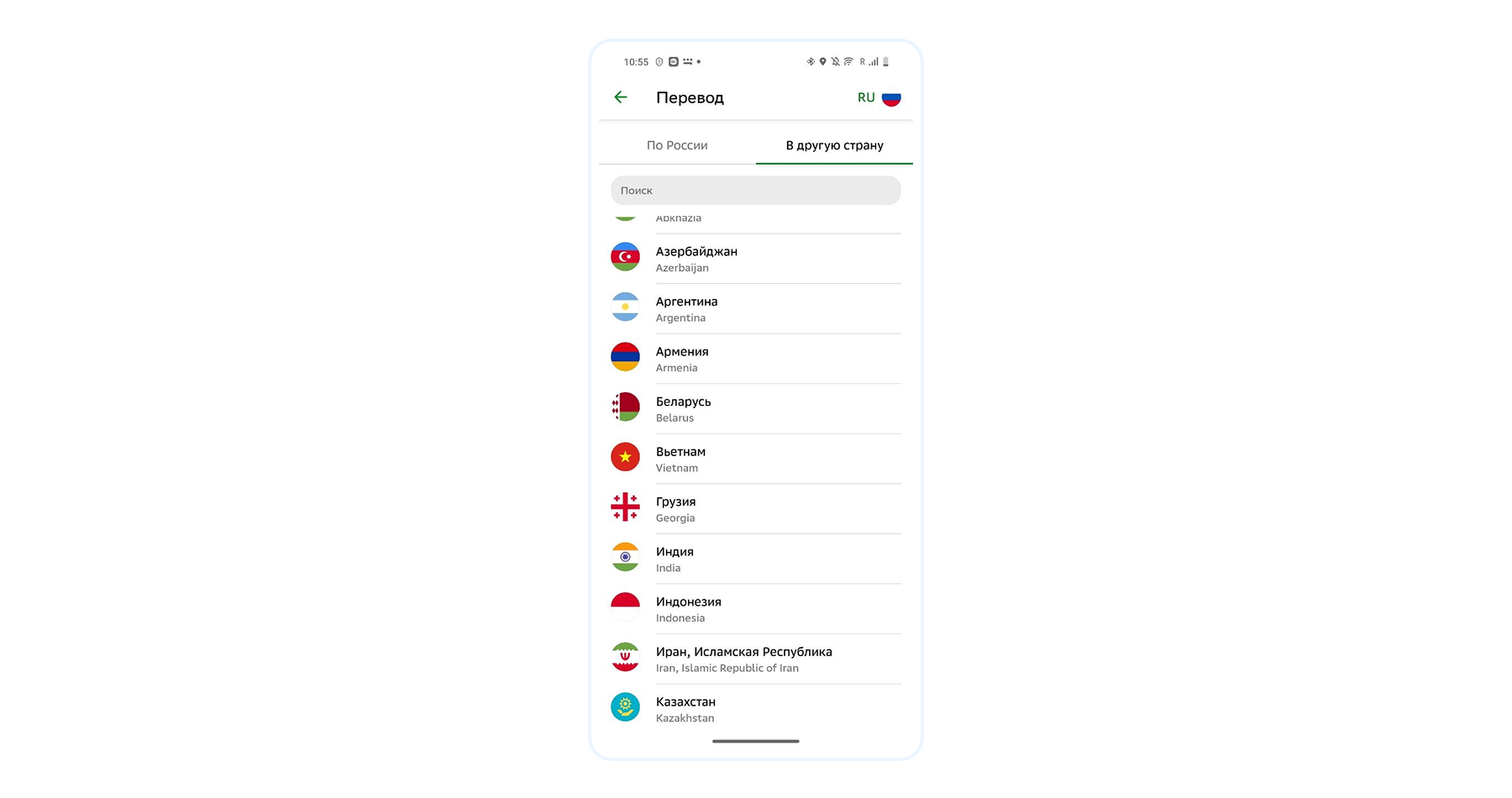 - Выбираете «В другую страну» → «Индия».