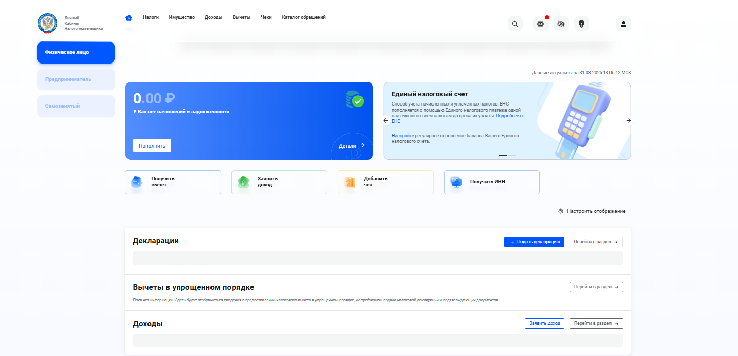 Проверить налоги по ИНН можно в личном кабинете на сайте ФНС — nalog.ru. В ЛК виден не только долг, но и весь расчет: начисления, сроки уплаты, история операций по единому налоговому счету.